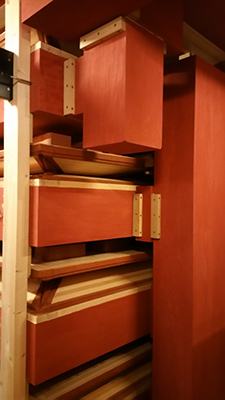 A magnificent new pipe organ, often called the “organ of the future (zukünftige Orgel),” has been built by Gerald Woehl for the Studio Acusticum Concert Hall in Piteå, Sweden. The experience of playing it is like having two or three world-class organs at one's fingertips. This webpage is intended as a resource for organists who will be performing on Organ Acusticum, based on information that I gathered during my visit to Piteå in January 2017.