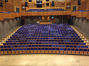 In 2007, the municipality of Piteå opened Studio Acusticum, a versatile wood-paneled performance space with (surprise?) fantastically good acoustics, adjacent to the School of Music. The 500 seats in its concert hall have been cleverly designed so that the sounds heard by an organist when practicing in an empty hall are essentially the same as the sounds heard when the hall is filled with people.