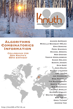 2018 began for me with an absolutely incredible 80th birthday celebration called Knuth80, held in the delightful city of Piteå in northern Sweden. It's impossible for me to thank adequately all of the wonderful people who contributed their time to making this event such a stunning success, certainly one of the greatest highlights of my life.