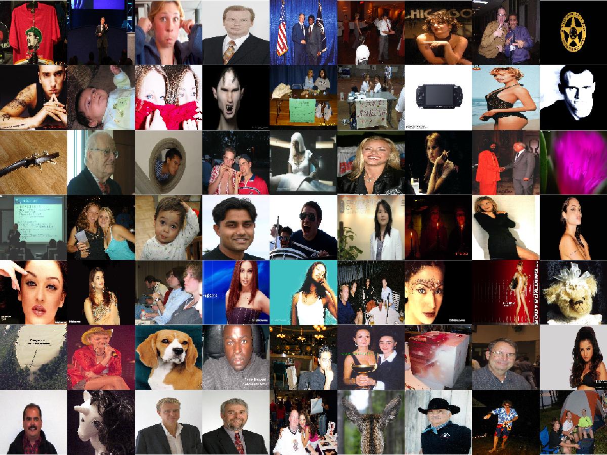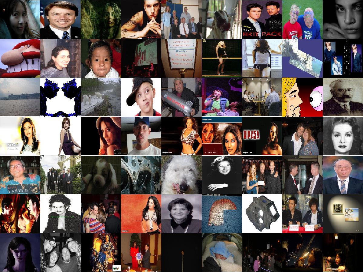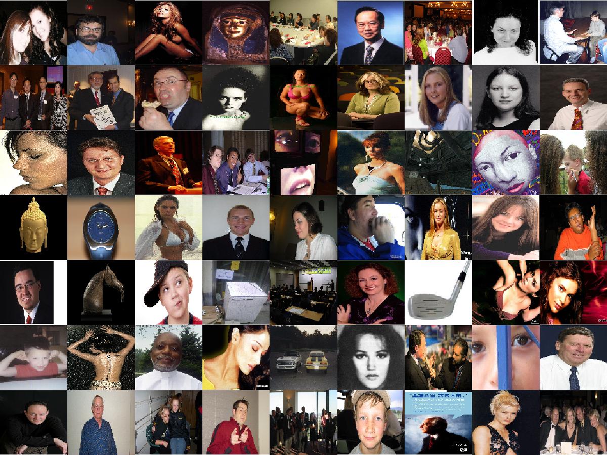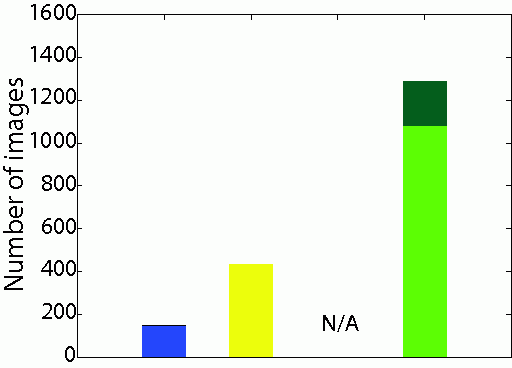 The blue bar is the number of images in the LabelMe dataset, the yellow bar is the number of images in Caltech 101 clean dataset collected manually from the Caltech101 raw dataset. Red bar represents the number of collected clean images (P) by OPTIMOL from Caltech101 raw dataset with the dark red part at the top of the red bar representing the number of False Positives (F). Green bar shows the number of clean images collected by OPTIMOL from our own downloaded images using the category name as the query word. The dark green part at the top is the number of False Positives. Since the pictures in the ˇ°faceˇ± category of Caltech 101 are taken by camera instead of downloading from the web, the raw images of the ˇ°faceˇ± category in Caltech 101 are not available. Hence, we add ˇ°N/Aˇ± to the third bar in the figure, which represents the number of retrieved images by OPTIMOL from the ˇ°faceˇ± category in Caltech 101. |