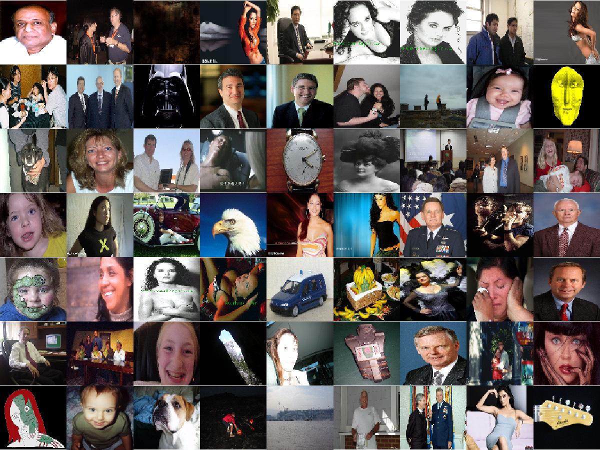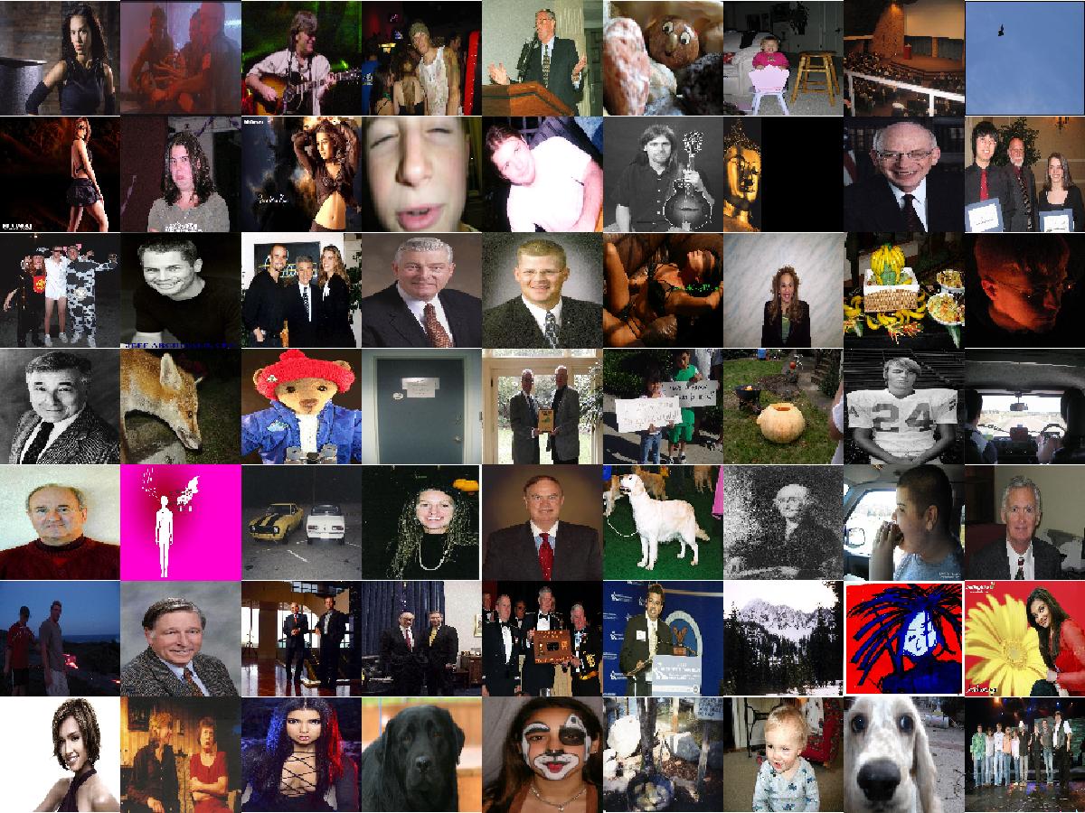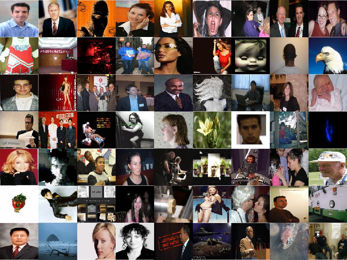 The blue bar is the number of images in the LabelMe dataset, the yellow bar is the number of images in Caltech 101 clean dataset collected manually from the Caltech101 raw dataset. Red bar represents the number of collected clean images (P) by OPTIMOL from Caltech101 raw dataset with the dark red part at the top of the red bar representing the number of False Positives (F). Green bar shows the number of clean images collected by OPTIMOL from our own downloaded images using the category name as the query word. The dark green part at the top is the number of False Positives. Since the pictures in the ˇ°faceˇ± category of Caltech 101 are taken by camera instead of downloading from the web, the raw images of the ˇ°faceˇ± category in Caltech 101 are not available. Hence, we add ˇ°N/Aˇ± to the third bar in the figure, which represents the number of retrieved images by OPTIMOL from the ˇ°faceˇ± category in Caltech 101. |