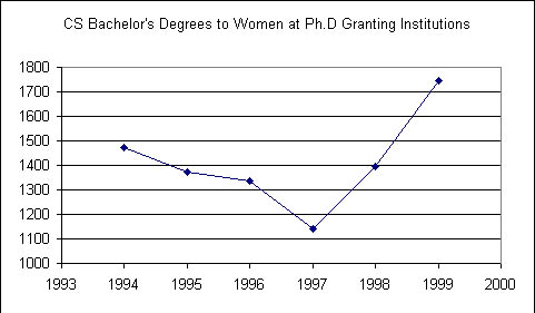This trend was not uniformly distributed in all science and engineering disciplines. Computer science bachelor's degrees up until 1996, the latest year for which national statistics are currently available, show a gender gap in computer science degree distribution that does not appear to be lessening.