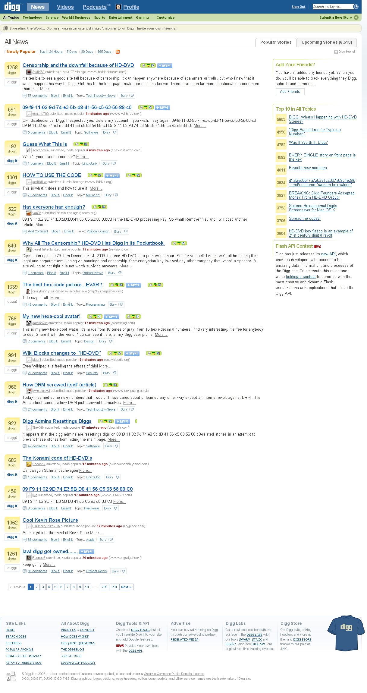 (to see a screenshot from the Digg news site on the day of the "revolt", click here)