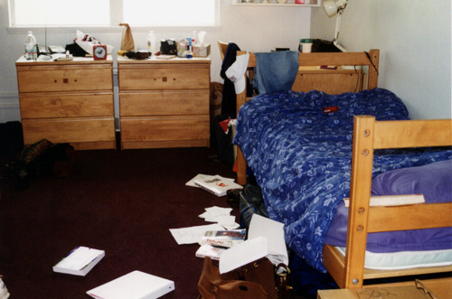 Take a look at this picture of a dorm room. We can immediately identify most