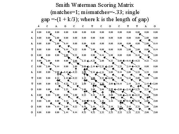 Instead of looking at an entire sequence at once, the S-W algorithm compares multi-lengthed segments, looking for whichever segment maximizes the scoring measure. The algorithm itself is recursive in nature: