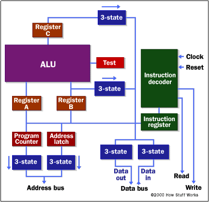 Arithmetic Logic Unit: Performs calculations with data from registers. Typically can be set to add, subtract, multiply and compare data.