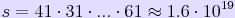 giving a total number of combinations of: