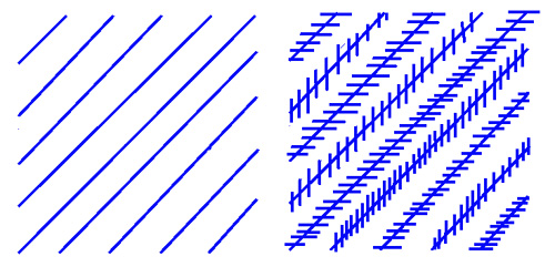 Do the diagonal lines look parallel in the right-hand image? They are!