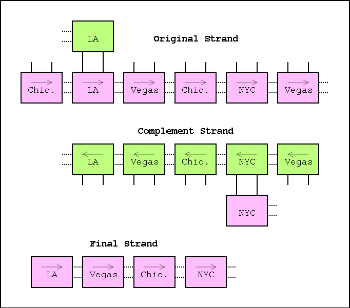 This diagram shows how selective PCR (polymerase chain reaction) extracts segments with the proper start and ending points from the zillions of strands of DNA.