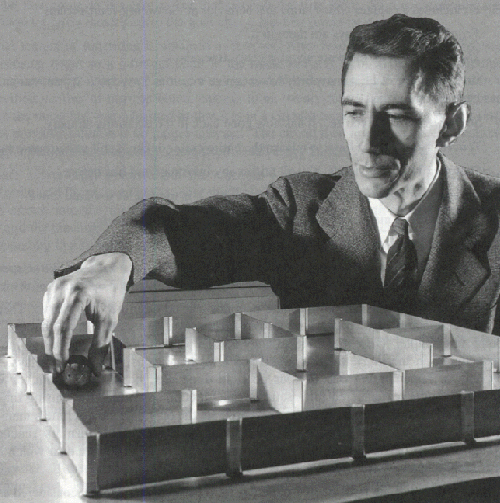 At the 8th Cybernetics Conference in 1952, Claude Shannon presented his maze-solving machine. This was a machine that could solve a maze by trial and error means. It could then remember the solution and also forget it in case the situation changed and the solution was no longer applicable.