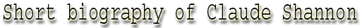 Claude Shannon, so little known to the public at large, is one of the scientists that greatly influenced the way our world functions. He achieved this mainly through his Information theory that made instant communications possible. He is a hero of the Cyberspace, as Charles A. Gimon calls him.
