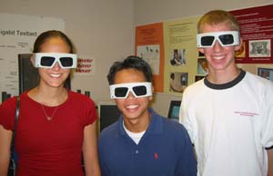 Carly, Shaowei, and Nathan sporting the specialized glasses necessary for 3D viewing