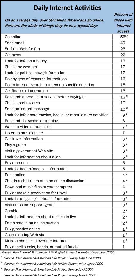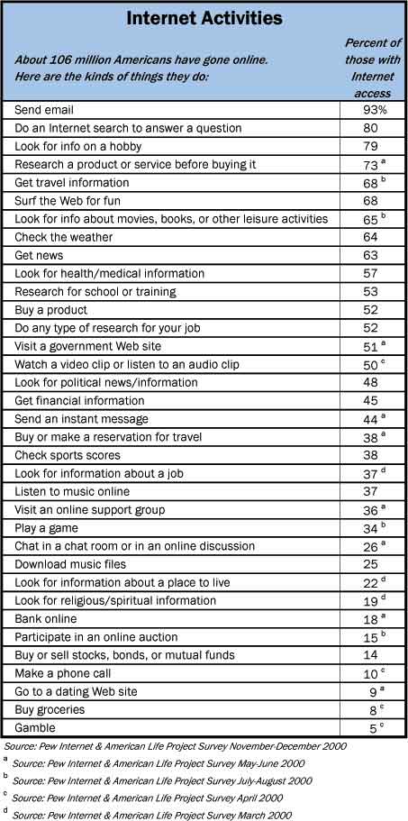 one's email). Email was also the most prevalent activity, with 93% of those with Internet