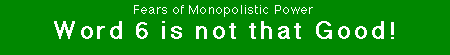 To answer this, a look at Microsoft as a company with a monopoly over the computer market is necessary. Microsoft has the power to make and sell such products. The company continues to make products that are very expensive, sometimes requiring additional software or hardware. Even though the software is often inefficient, both time-wise and space-wise, the public still buys the products because of the Microsoft name and newer is supposed to be better. Unfortunately, many consumers believe that Microsoft and other companies of the sort know what is best for them. While Microsoft Word 6.0.1 has many features that make it more desirable than its predecessors, its disadvantages outweigh these benefits and make it a poor choice for most users.