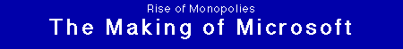 Let us go back in time a little to the mid-1970s when IBM was the king of the computer hardware industry. Microsoft started in 1975 as a producer of programming languages for the MIPS Altair 7500. In 1981, Microsoft bought an operating system for the Intel based 8086 chip from a small company called Seattle Computer Products and redesigned its product to license it to IBM for its new personal computer. This was released as MS DOS 1.0. (Microsoft Timeline) IBM, at the time held a monopoly over the hardware of computers - but by allowing Microsoft, an outside source, to develop the operating system of its computers, and Intel to develop the chips, IBM effectively ceded control of the software industry to those up-and-coming companies. Microsoft retained the right to license their operating system to other manufacturers and helped to generate the massive IBM clone business.