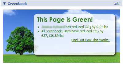 Greenbook is a canonical example of a cause-promoting application. Greenbook aims to fight the negative effects of global warming. It markets itself as follows: "Spending time on Facebook uses energy, which puts CO2 in the air. Greenbook reduces the CO2 in the air by investing in green programs and buying Renewable Energy Credits... so now, you can do your part for the planet, in one more way!" Adding the application places a promotional box on the user's profile, which advertises the application to all other users that visit the profile. In doing so, Greenbook promotes itself and raises awareness about the negative effects of global warming.