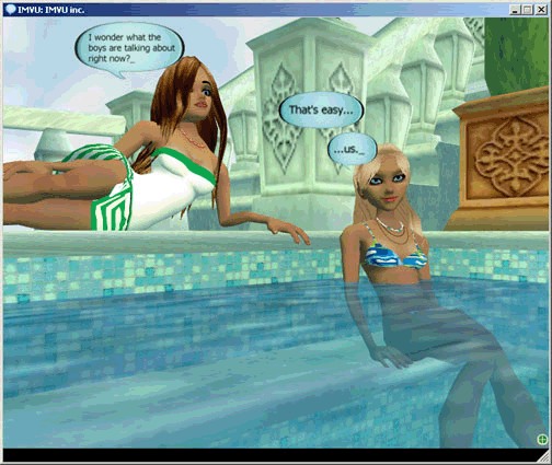 Take for instance this description praising the benefits of IMVU, “Imagine that instead of typing into a chat window and seeing words pop up on a screen, the conversation takes place in balloons above your head. Well, not your actual head -- the head of an avatar that you create and customize. Your avatar sits on a sofa with other avatars, chatting away. It can laugh at things that are funny, hug someone or show off a dance move.” . IMVU offers a new way to create friend networks online by giving the users events to do while they are interacting. You’re able to customize clothing, setting, and other details of life that mimics face-to-face interactions. The benefits of such a world is that instead of mustering up small talk to keep one another interested, you’re encouraged to perform actions and talk to people who you have more in common with. You can compliment some one's clothing, or you can take part in a debate over political issues.