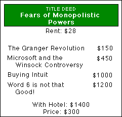 Microsoft may not control every aspect of your life, but with its growing dominance in a growing number of software and computer sectors, such pessimistic visions of a Microsoft-controlled life are not without grains of truth. This project explores the history, effects, ethics, and issues surrounding the corporate monopoly, with an emphasis on those monopolies in the software/telecommunications industries. Monopolies in such areas are especially intriguing because they are often in markets only years old, pushing existing laws and government standards into the dregs of obsolescence.