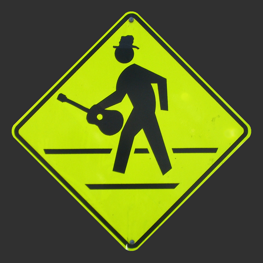 | Sir Francis Drake Boulevard approaching Madrone Avenue, San Anselmo (Marc LeBrun found an animated version of this sign on Jerry Hannan's website) |