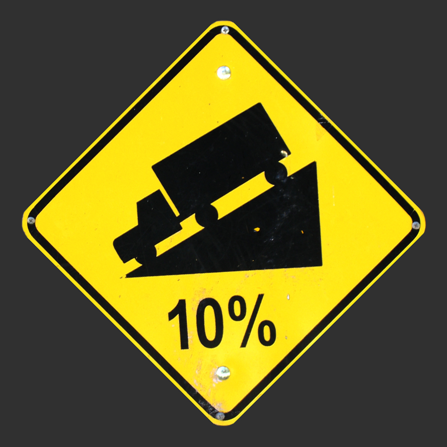 | near the playground in Flood County Park, San Mateo County | (this is a joke sign, by a small hill in a path where kids can ride their dump trucks) |