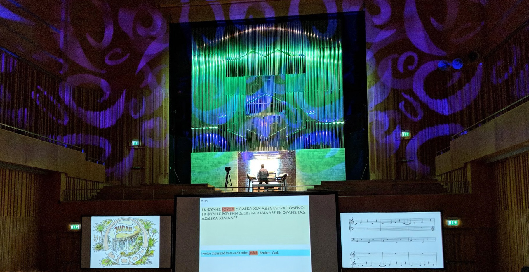 It's especially interesting to hear parts of it played also on the famous van Hagerbeer Organ in the Pieterskerk, Leiden. This organ (built circa 1640) reportedly contains more 15th-century pipes than any other organ in the world. It was certainly not designed for music such as this, because the organs of those days had many fewer notes; and its mean-tone tuning was naturally optimized for pre-Bach works. But “to those who have ears to hear, let them hear”! Chapter 2; Chapter 20; Chapter 21:1–4. (These fascinating experiments were made in the spring of 2019 by Jan Overduin. Since he recorded the audio at the console, the Rueckpositiv (controlled by the lowest keyboard) sounds louder than the Hauptwerk and the Bovenwerk.)