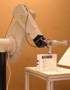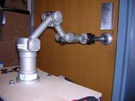 · Puma robot picking up a box Fully autonomous experiment. · STAIR robot opening a door In this experiment probing and manipulation of the door handle are autonomous, but motion of the mobile platform is controlled with a joystick. · Estimating link contact The contact is estimated using active sensing strategy and geometric constraints (see ICRA07 paper below). · Estimating contact in a multi-contact scenario The experiment shows that the same active sensing strategy can be used with multiple contacts.