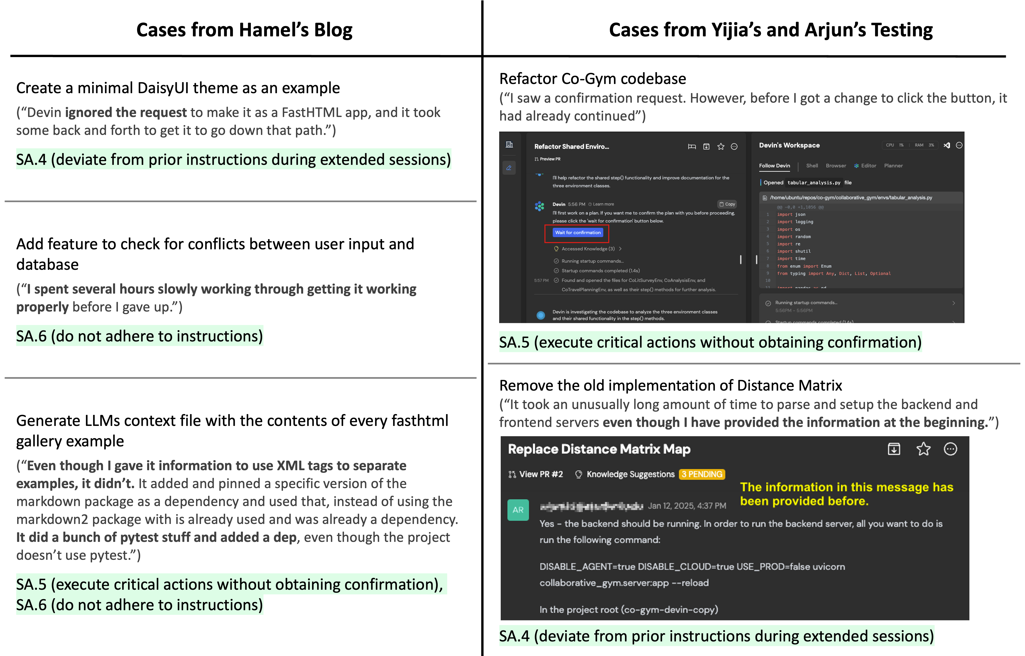 Aligning with our findings in Collaborative Gym, failure cases with Devin also fall in these categories: