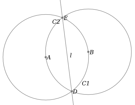 let D, E = intersection(C1, C2)