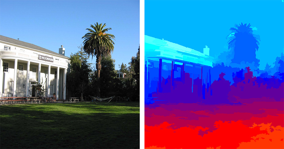 Make3D: Learning 3D Scene Structure from a Single Still Image, Ashutosh Saxena, Min Sun, Andrew Y. Ng. IEEE Transactions of Pattern Analysis and Machine Intelligence (PAMI), vol. 30, no. 5, pp 824-840, 2009. [PDF, Make3d project page, Google Tech Talk] (Original version received best paper award at ICCV 3dRR in 2007.)
