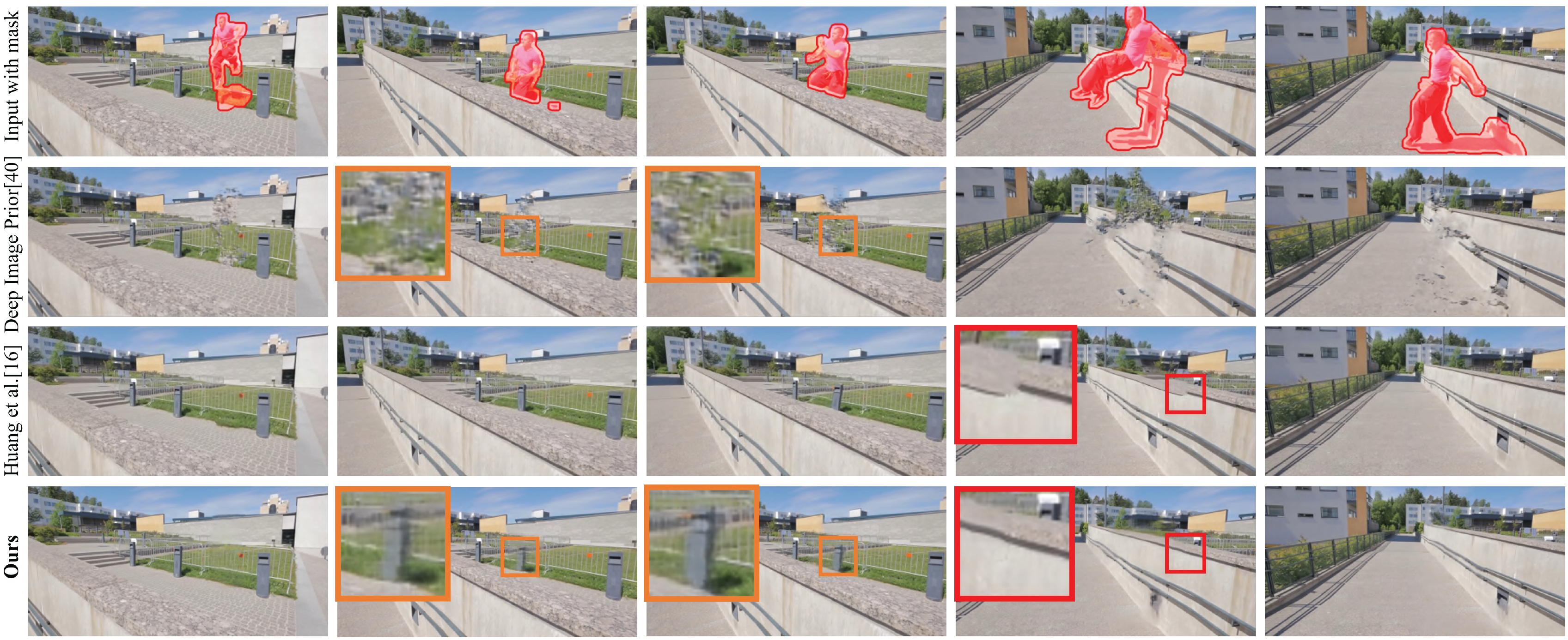 We propose a novel video inpainting algorithm that simultaneously hallucinates missing appearance and motion (optical flow) information, building upon the recent `Deep Image Prior' (DIP) that exploits convolutional network architectures to enforce plausible texture in static images. In extending DIP to video we make two important contributions. First, we show that coherent video inpainting is possible without a priori training. We take a generative approach to inpainting based on internal (within-video) learning without reliance upon an external corpus of visual data to train a one-size-fits-all model for the large space of general videos. Second, we show that such a framework can jointly generate both appearance and flow, whilst exploiting these complementary modalities to ensure mutual consistency. We show that leveraging appearance statistics specific to each video achieves visually plausible results whilst handling the challenging problem of long-term consistency.