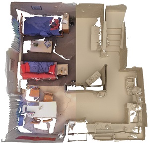 Complete the geometry and color of 3D scanning model. Detect planar structure of the geometry, extrapolate to complete the scene. Texture optimization by fixing misalignment, motion blur and auto-exposure artifacts.