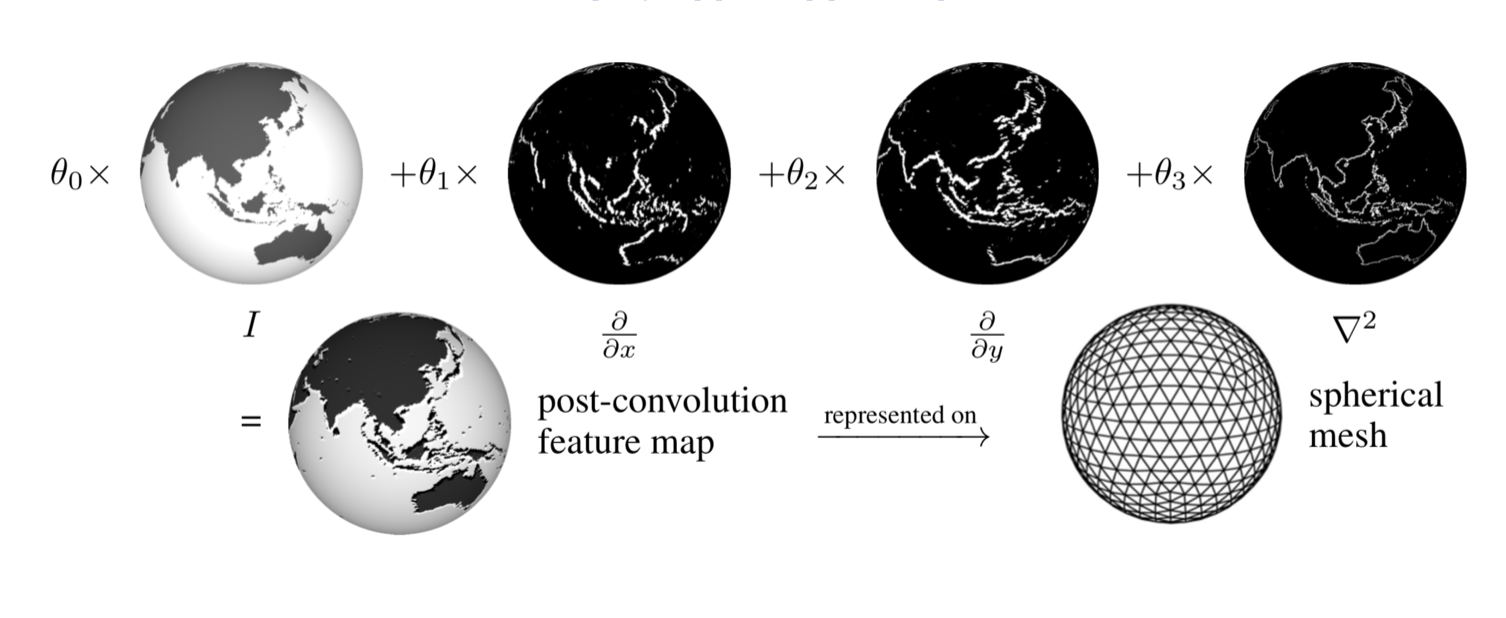 We present an efficient convolution kernel for Convolutional Neural Networks (CNNs) on unstructured grids using parameterized differential operators while focusing on spherical signals such as panorama images or planetary signals.