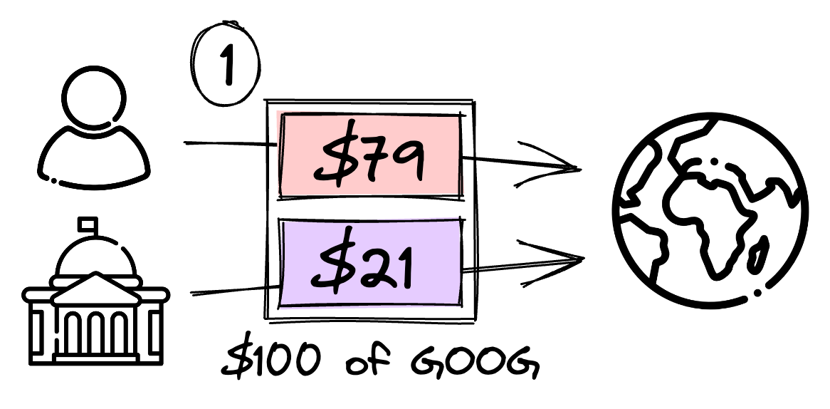 Let's go back to our original scenario, where we donate the $100 of appreciated GOOG. The first step from above now looks like this: