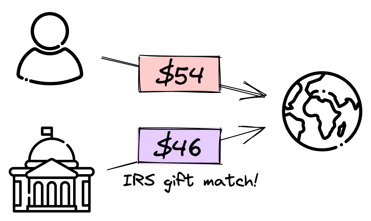 The US government subsidizes donations through the tax code. This subsidy can have a huge impact for donors in high tax brackets.