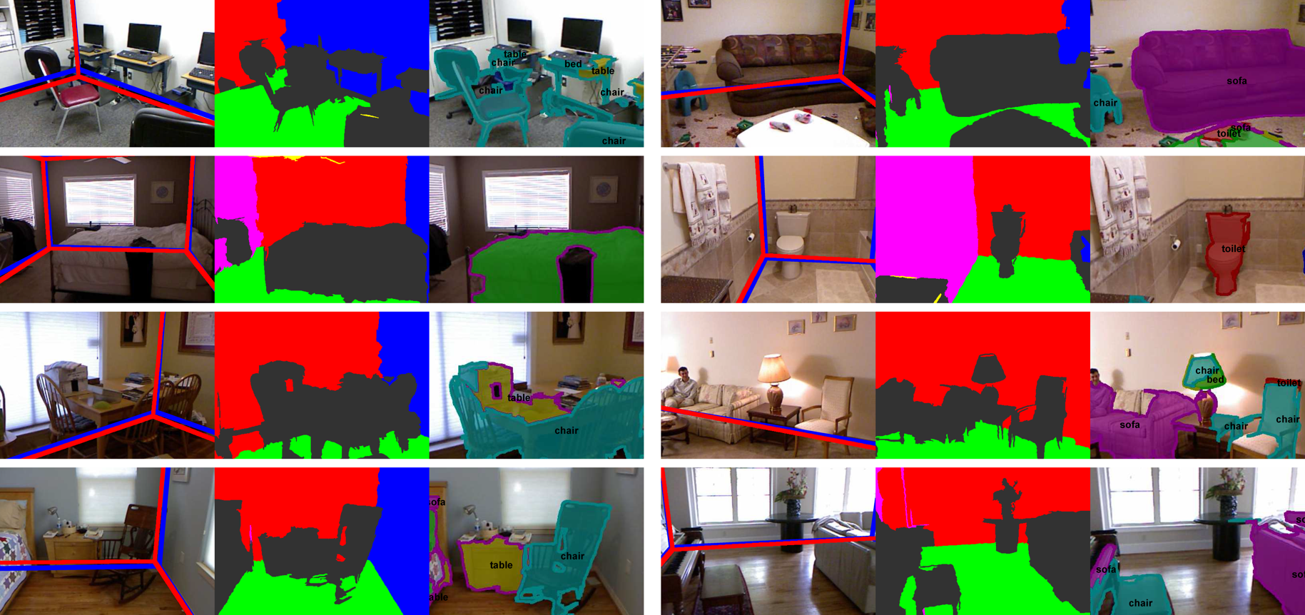 We demonstrate the effectiveness of our approach on the challenging NYU v2 dataset and show that employing depth reduces the layout error by 6% and the clutter estimation by 13%.