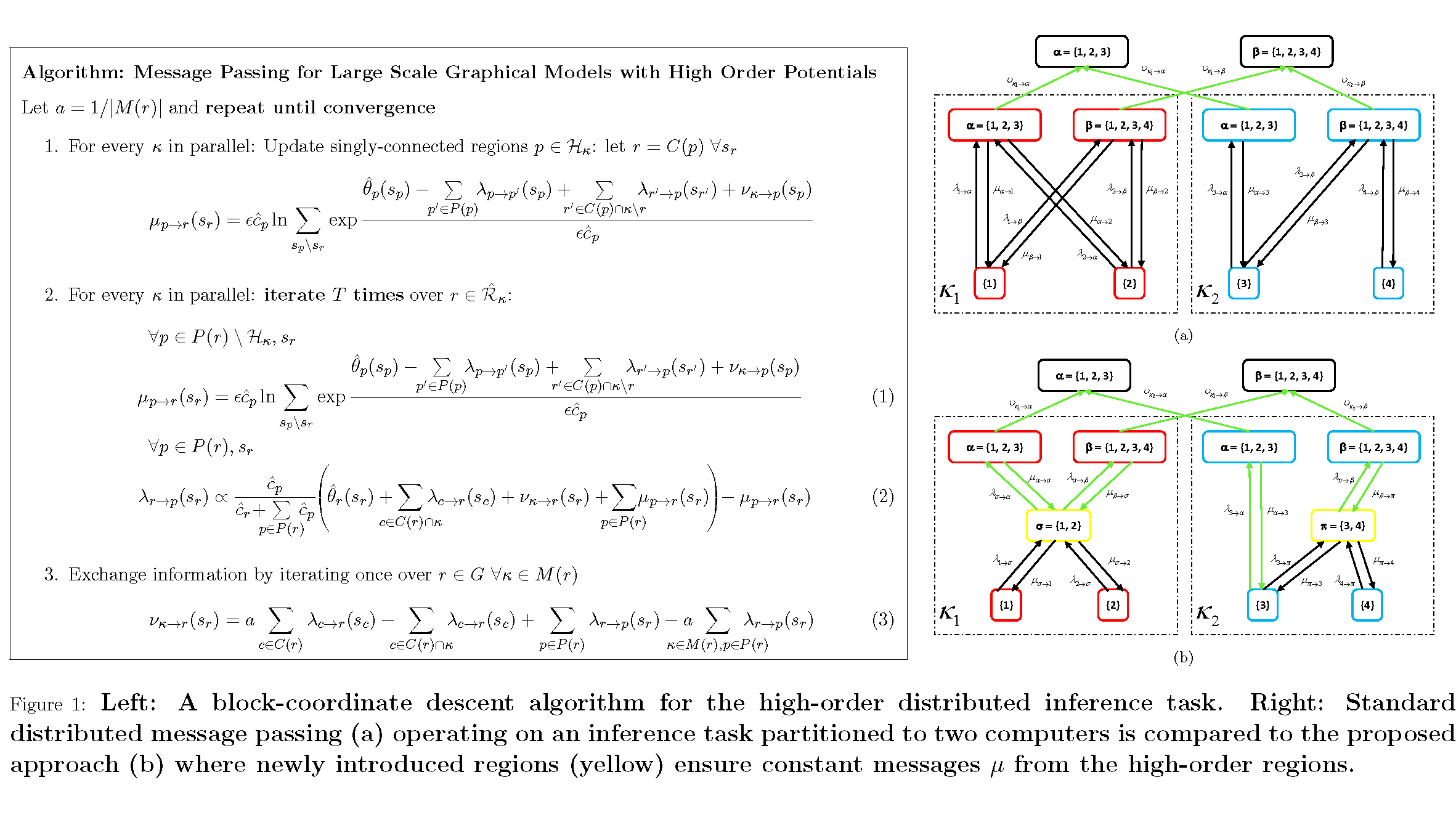 In this paper we propose a partitioning strategy followed by a novel message passing algorithm which is able to exploit pre-computations to only update the high-order factors when passing messages across machines.